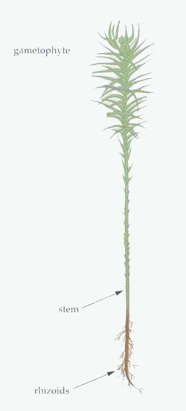 In mosses, the gametophyte is the dominant generation. The large moss plants that you see in damp locations are the haploid gametophytes.
